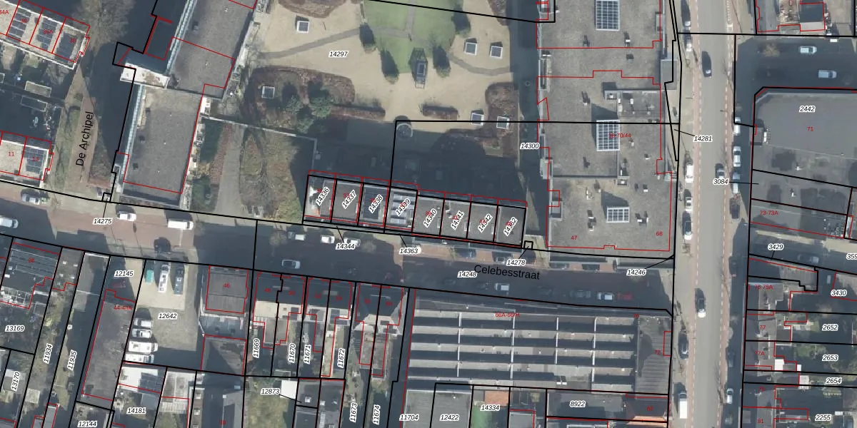 Het perceel waarop Celebesstraat 39 staat heeft een oppervlakte van 56 m². Dit is een klein perceel. De perceeloppervlakte wordt geregistreerd door het Kadaster. Gedetailleerde informatie over de maten van dit perceel kunt u vinden in het rapport Kadastrale kaart met maatvoering van Celebesstraat 39.
