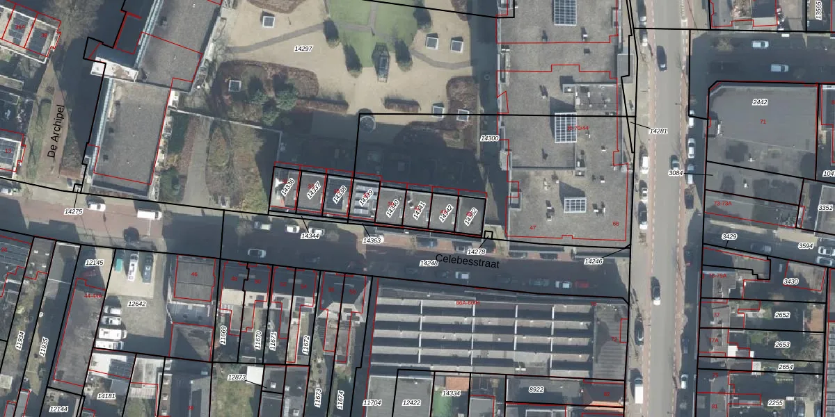 Het perceel waarop Celebesstraat 41 staat heeft een oppervlakte van 56 m². Dit is een klein perceel. De perceeloppervlakte wordt geregistreerd door het Kadaster. Gedetailleerde informatie over de maten van dit perceel kunt u vinden in het rapport Kadastrale kaart met maatvoering van Celebesstraat 41.