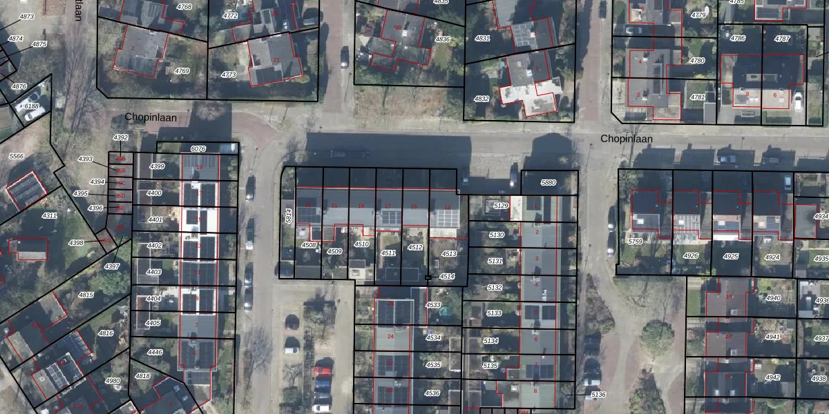 Chopinlaan 15 is gelegen op kadastraal perceel LNK00B4512. Deze kadastrale aanduiding is uniek en wordt gebruikt door het Kadaster om eigendomsrechten en andere zakelijke rechten vast te leggen. Het perceel maakt onderdeel uit van de kadastrale gemeente Lonneker.