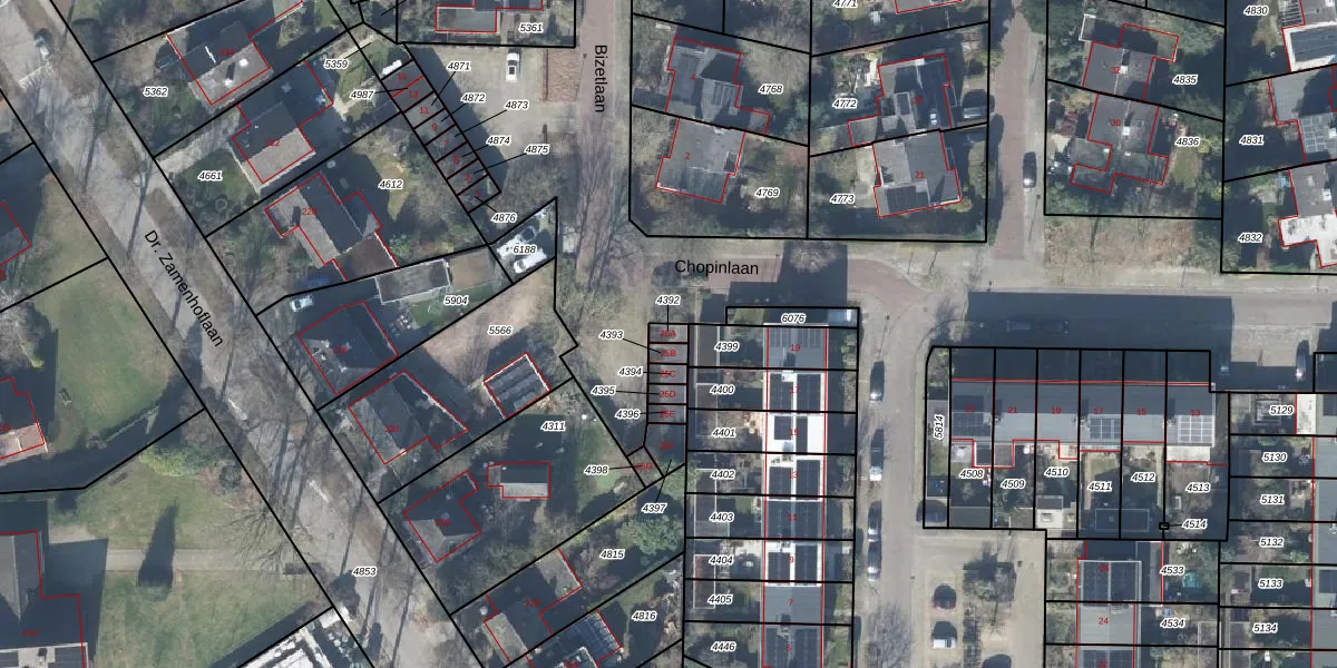 Gebruik de zoekbalk of klik op een perceel voor informatie over de adressen binnen dit perceel.
