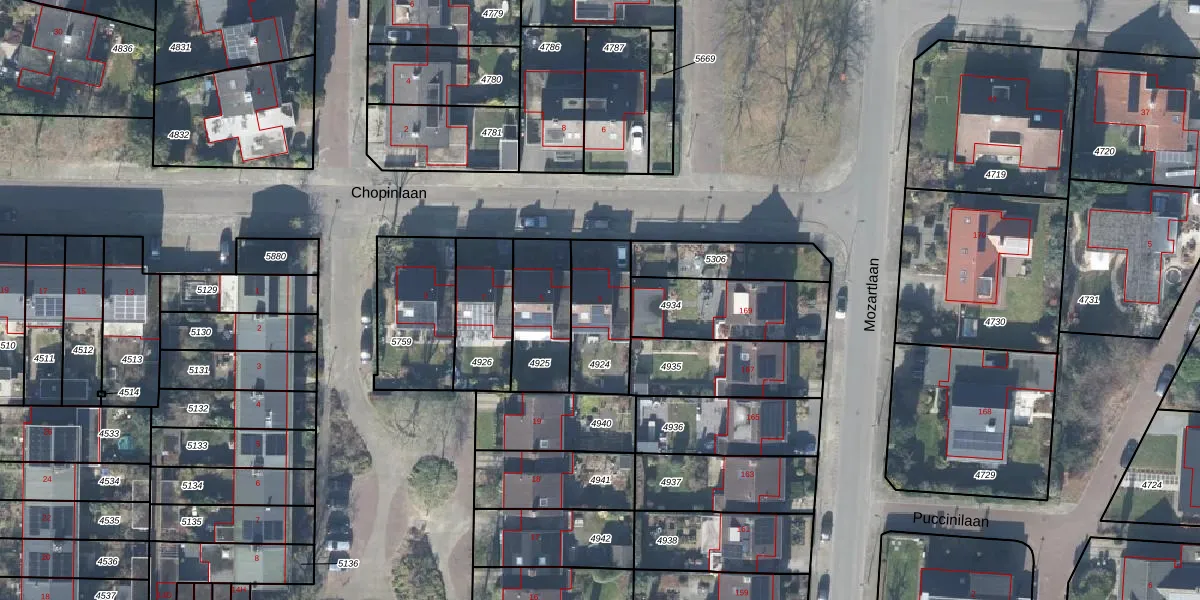 Gebruik de zoekbalk of klik op een perceel voor informatie over de adressen binnen dit perceel.