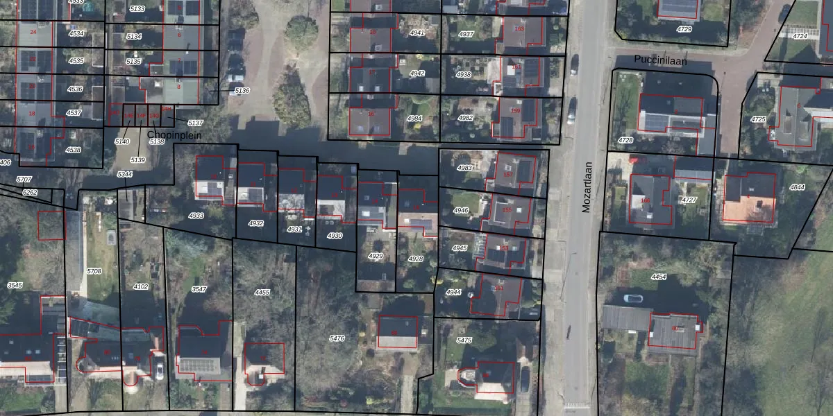 Gebruik de zoekbalk of klik op een perceel voor informatie over de adressen binnen dit perceel.