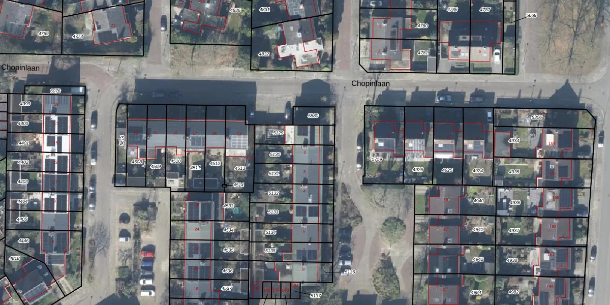 Gebruik de zoekbalk of klik op een perceel voor informatie over de adressen binnen dit perceel.