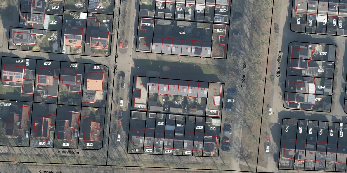 Citroenvlinder 108 is gelegen op kadastraal perceel LNK00AA2163. Deze kadastrale aanduiding is uniek en wordt gebruikt door het Kadaster om eigendomsrechten en andere zakelijke rechten vast te leggen. Het perceel maakt onderdeel uit van de kadastrale gemeente Lonneker.