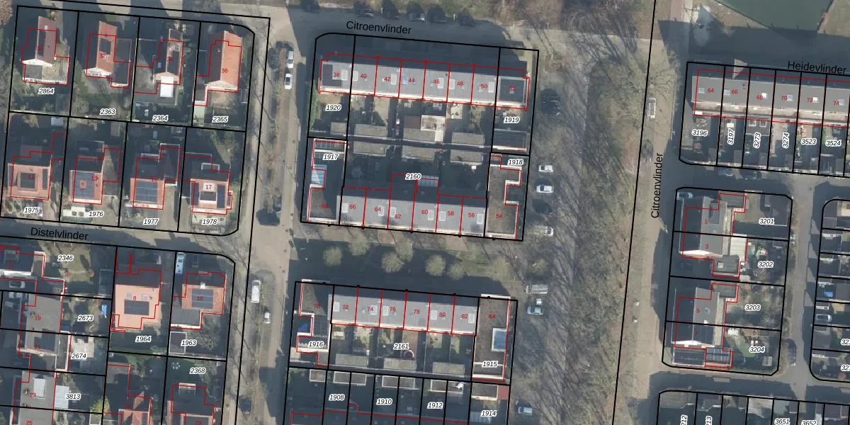 Het perceel waarop Citroenvlinder 60 staat heeft een oppervlakte van 1531 m². Dit is een zeer groot perceel. De perceeloppervlakte wordt geregistreerd door het Kadaster. Gedetailleerde informatie over de maten van dit perceel kunt u vinden in het rapport Kadastrale kaart met maatvoering van Citroenvlinder 60.