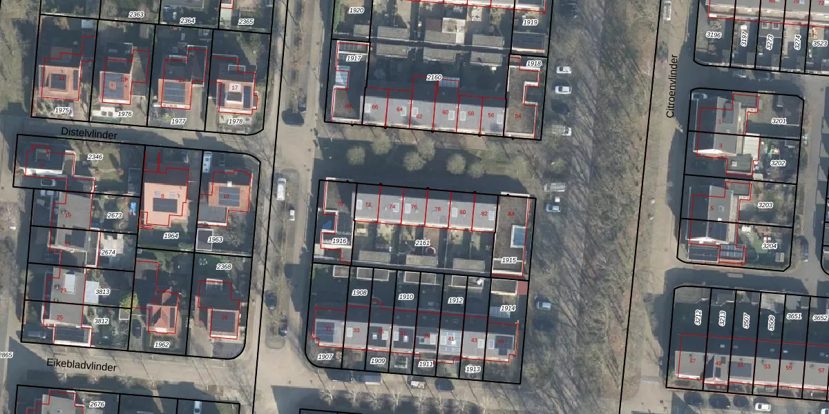 Het perceel waarop Citroenvlinder 76 staat heeft een oppervlakte van 679 m². Dit is een groot perceel. De perceeloppervlakte wordt geregistreerd door het Kadaster. Gedetailleerde informatie over de maten van dit perceel kunt u vinden in het rapport Kadastrale kaart met maatvoering van Citroenvlinder 76.