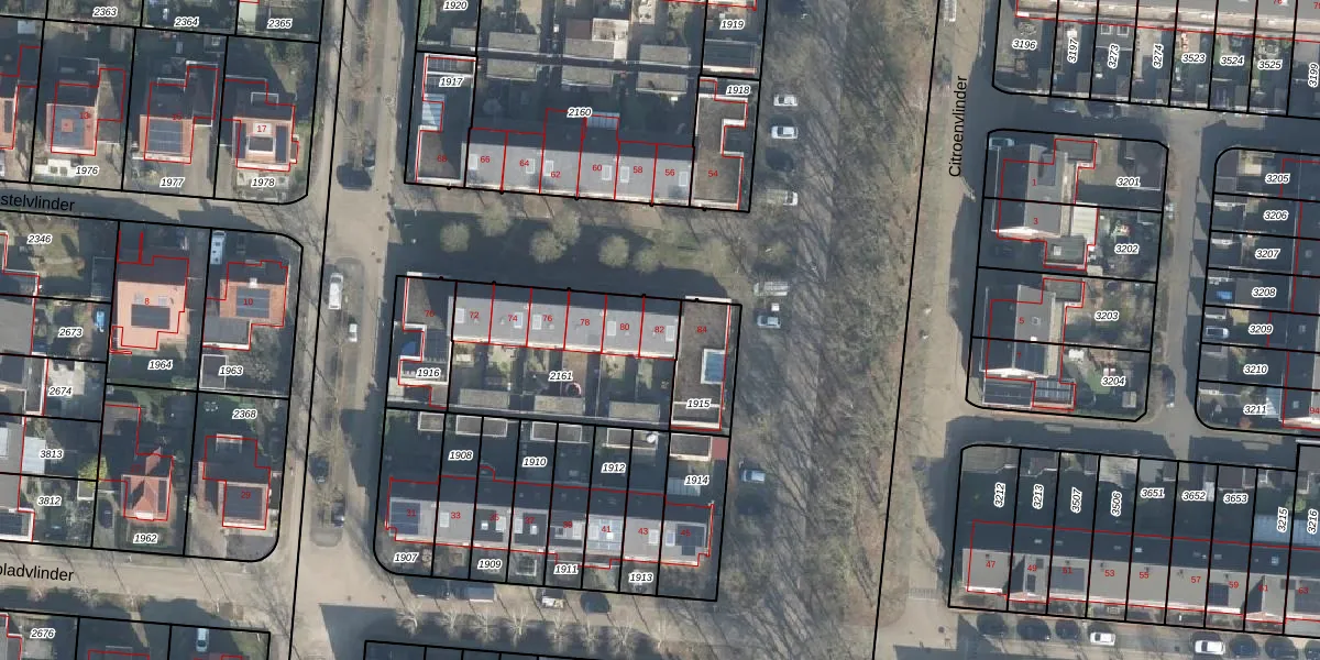 Het perceel waarop Citroenvlinder 82 staat heeft een oppervlakte van 679 m². Dit is een groot perceel. De perceeloppervlakte wordt geregistreerd door het Kadaster. Gedetailleerde informatie over de maten van dit perceel kunt u vinden in het rapport Kadastrale kaart met maatvoering van Citroenvlinder 82.
