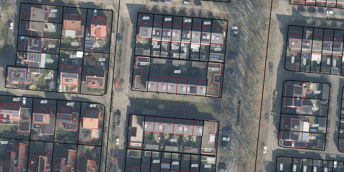 Het perceel waarop Citroenvlinder 94 staat heeft een oppervlakte van 679 m². Dit is een groot perceel. De perceeloppervlakte wordt geregistreerd door het Kadaster. Gedetailleerde informatie over de maten van dit perceel kunt u vinden in het rapport Kadastrale kaart met maatvoering van Citroenvlinder 94.
