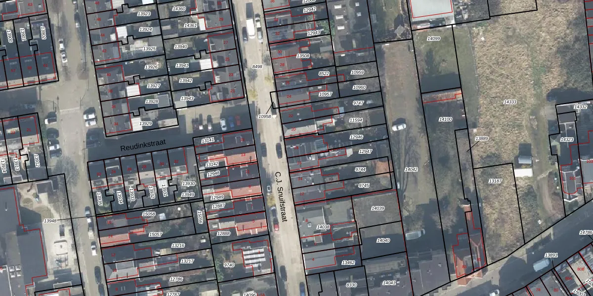 Gebruik de zoekbalk of klik op een perceel voor informatie over de adressen binnen dit perceel.