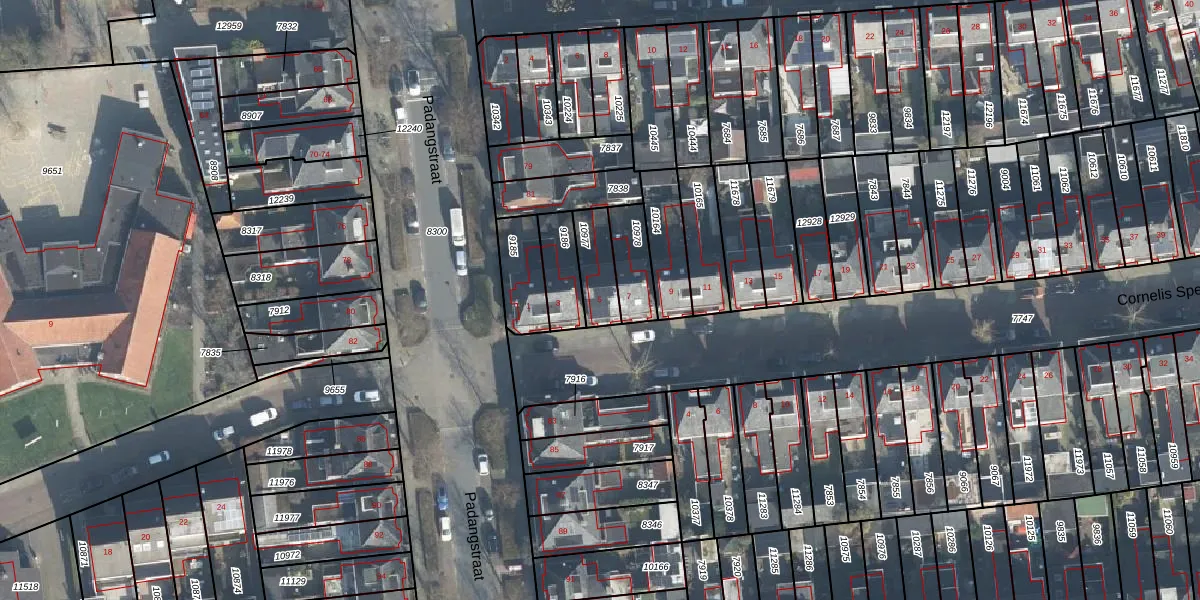 Gebruik de zoekbalk of klik op een perceel voor informatie over de adressen binnen dit perceel.