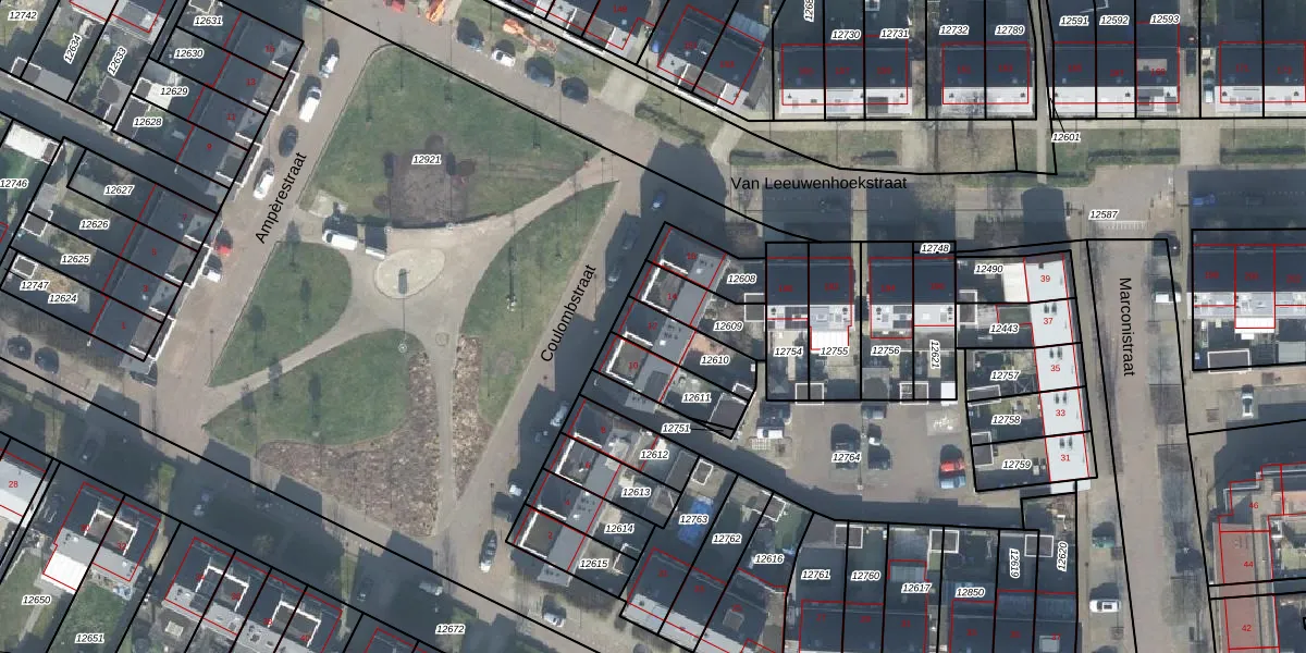 Het perceel waarop Coulombstraat 12 staat heeft een oppervlakte van 142 m². Dit is een middelgroot perceel. De perceeloppervlakte wordt geregistreerd door het Kadaster. Gedetailleerde informatie over de maten van dit perceel kunt u vinden in het rapport Kadastrale kaart met maatvoering van Coulombstraat 12.