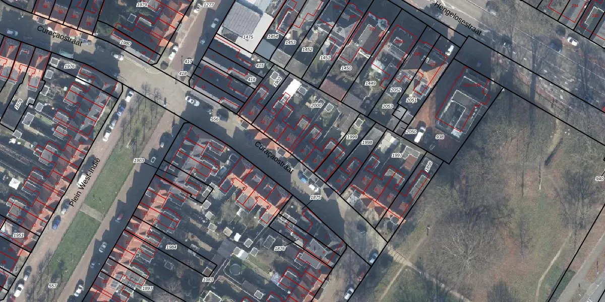 Het perceel waarop Curaçaostraat 16 staat heeft een oppervlakte van 612 m². Dit is een groot perceel. De perceeloppervlakte wordt geregistreerd door het Kadaster. Gedetailleerde informatie over de maten van dit perceel kunt u vinden in het rapport Kadastrale kaart met maatvoering van Curaçaostraat 16.