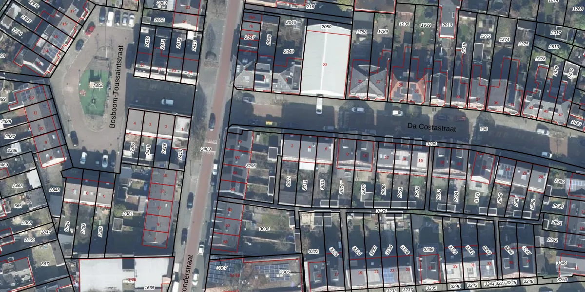 Het perceel waarop Da Costastraat 2 staat heeft een oppervlakte van 144 m². Dit is een middelgroot perceel. De perceeloppervlakte wordt geregistreerd door het Kadaster. Gedetailleerde informatie over de maten van dit perceel kunt u vinden in het rapport Kadastrale kaart met maatvoering van Da Costastraat 2.