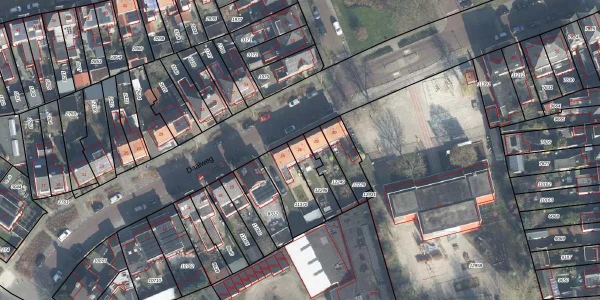 Het perceel waarop Daalweg 26 staat heeft een oppervlakte van 181 m². Dit is een middelgroot perceel. De perceeloppervlakte wordt geregistreerd door het Kadaster. Gedetailleerde informatie over de maten van dit perceel kunt u vinden in het rapport Kadastrale kaart met maatvoering van Daalweg 26.