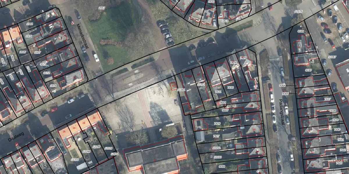 Het perceel waarop Daalweg 42 staat heeft een oppervlakte van 4086 m². Dit is een zeer groot perceel. De perceeloppervlakte wordt geregistreerd door het Kadaster. Gedetailleerde informatie over de maten van dit perceel kunt u vinden in het rapport Kadastrale kaart met maatvoering van Daalweg 42.