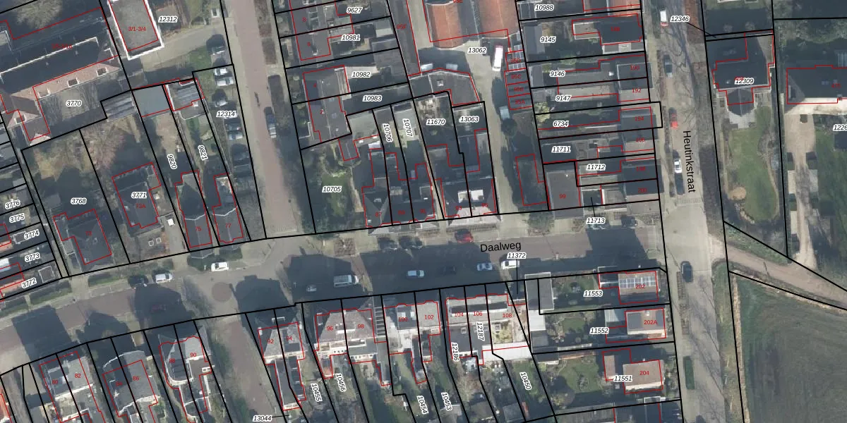 Het perceel waarop Daalweg 91 staat heeft een oppervlakte van 173 m². Dit is een middelgroot perceel. De perceeloppervlakte wordt geregistreerd door het Kadaster. Gedetailleerde informatie over de maten van dit perceel kunt u vinden in het rapport Kadastrale kaart met maatvoering van Daalweg 91.