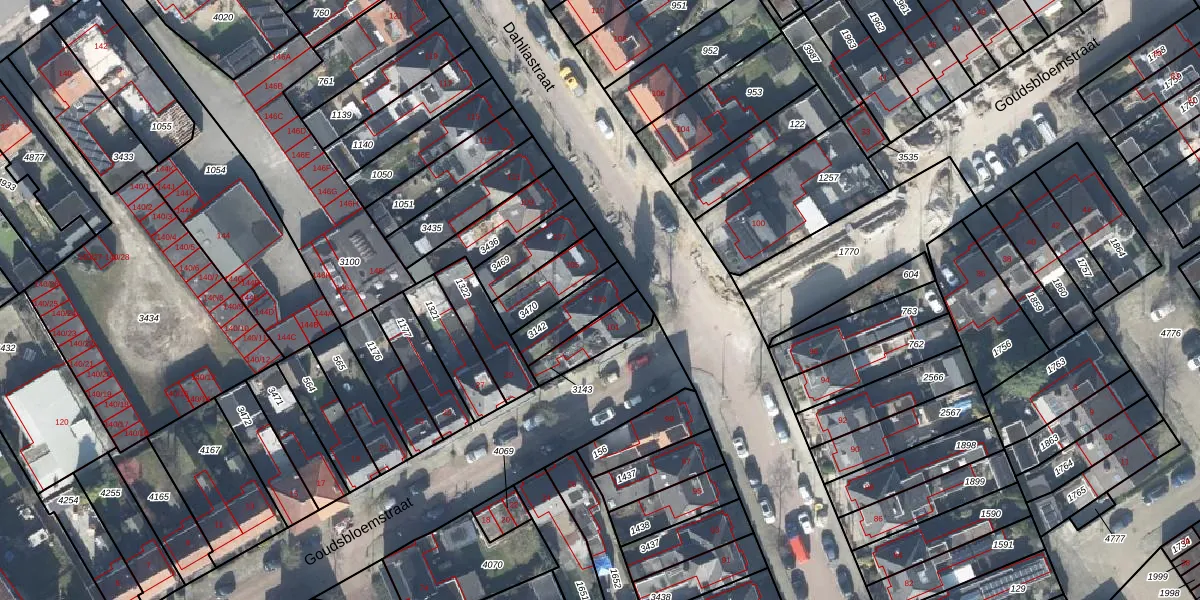 Gebruik de zoekbalk of klik op een perceel voor informatie over de adressen binnen dit perceel.