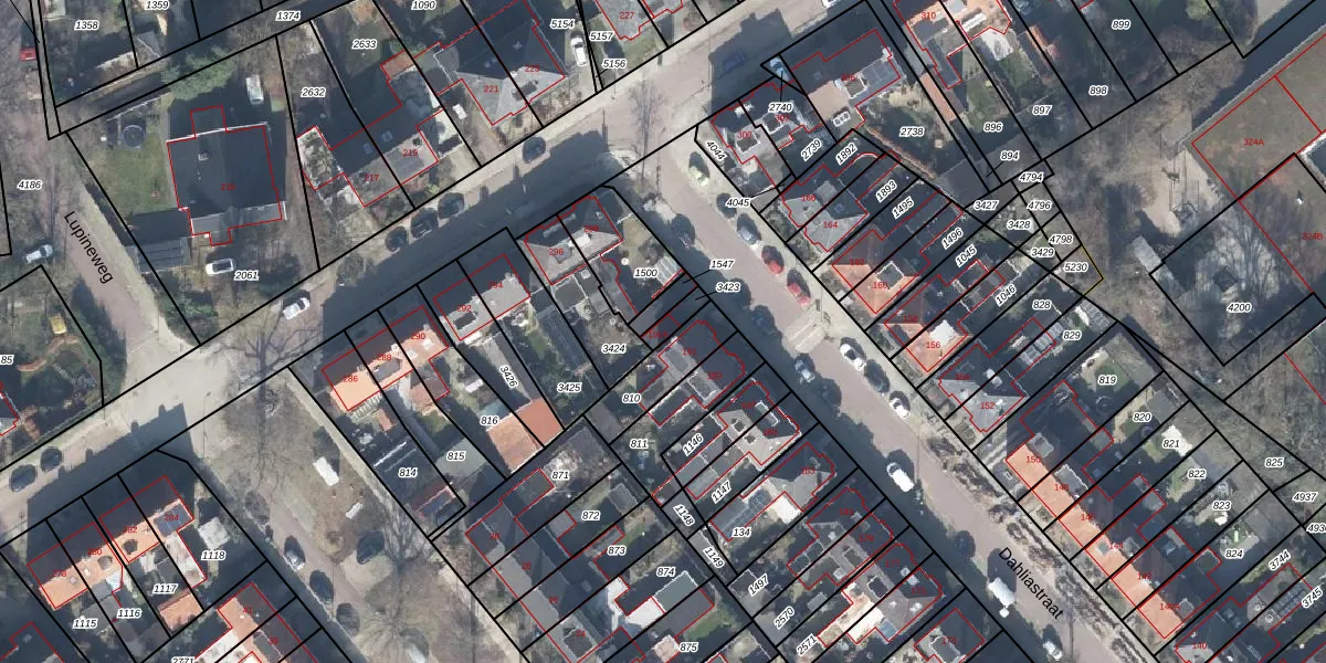 Het perceel waarop Dahliastraat 191-A staat heeft een oppervlakte van 32 m². Dit is een klein perceel. De perceeloppervlakte wordt geregistreerd door het Kadaster. Gedetailleerde informatie over de maten van dit perceel kunt u vinden in het rapport Kadastrale kaart met maatvoering van Dahliastraat 191-A.