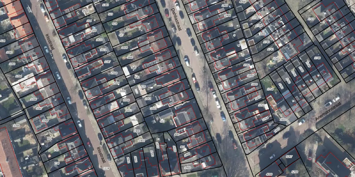 Het perceel waarop Dahliastraat 63 staat heeft een oppervlakte van 187 m². Dit is een middelgroot perceel. De perceeloppervlakte wordt geregistreerd door het Kadaster. Gedetailleerde informatie over de maten van dit perceel kunt u vinden in het rapport Kadastrale kaart met maatvoering van Dahliastraat 63.