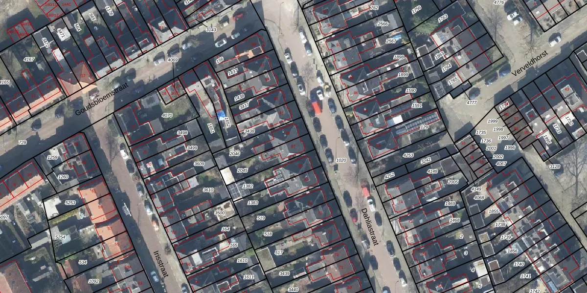 Gebruik de zoekbalk of klik op een perceel voor informatie over de adressen binnen dit perceel.
