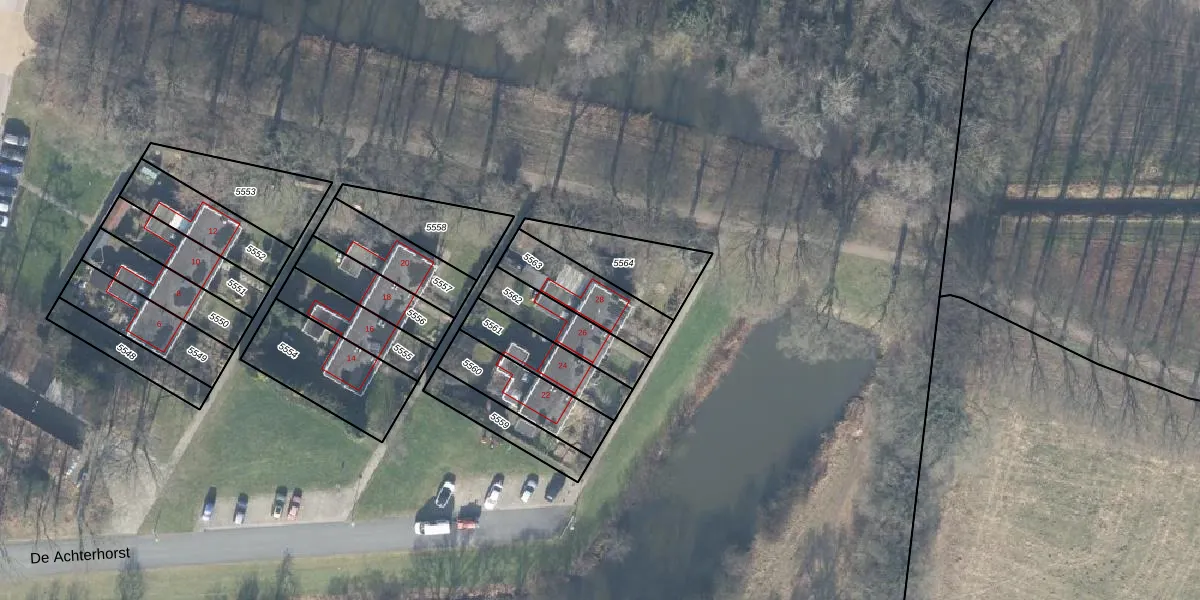 Het perceel waarop De Achterhorst 28 staat heeft een oppervlakte van 218 m². Dit is een middelgroot perceel. De perceeloppervlakte wordt geregistreerd door het Kadaster. Gedetailleerde informatie over de maten van dit perceel kunt u vinden in het rapport Kadastrale kaart met maatvoering van De Achterhorst 28.