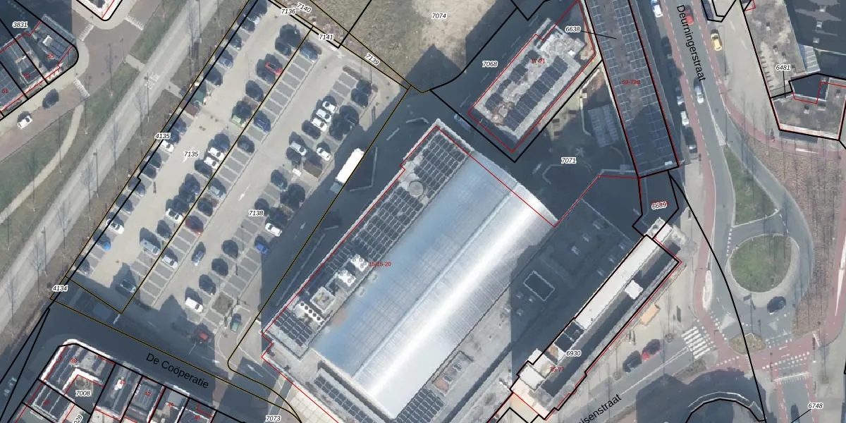 Het perceel waarop De Coöperatie 15 staat heeft een oppervlakte van 5499 m². Dit is een zeer groot perceel. De perceeloppervlakte wordt geregistreerd door het Kadaster. Gedetailleerde informatie over de maten van dit perceel kunt u vinden in het rapport Kadastrale kaart met maatvoering van De Coöperatie 15.