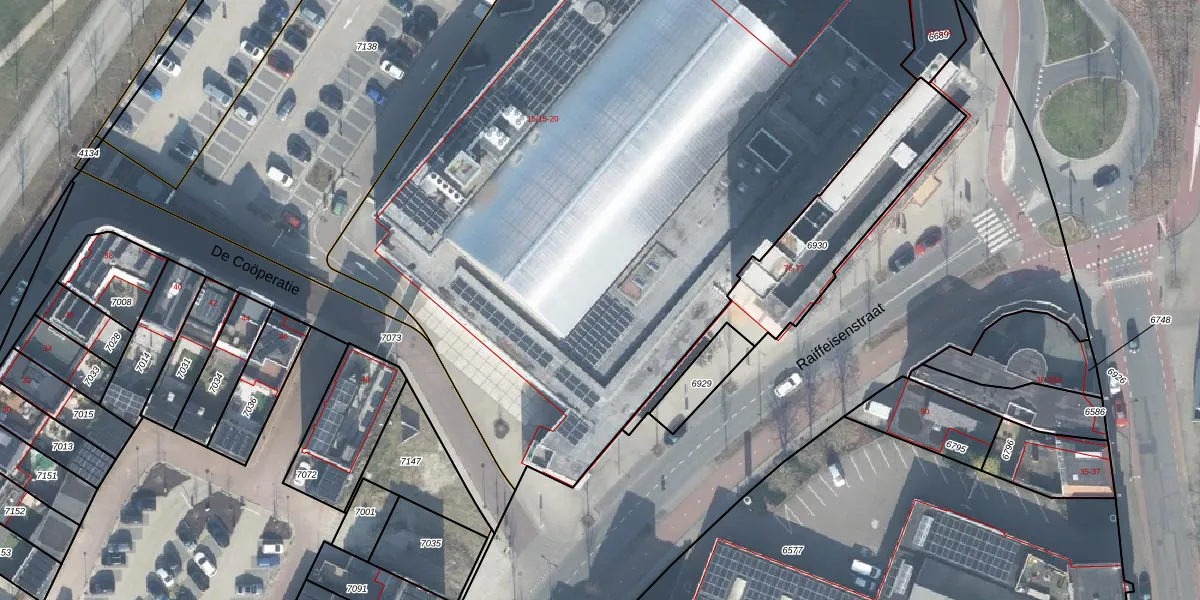 Het perceel waarop De Coöperatie 15-16 staat heeft een oppervlakte van 5499 m². Dit is een zeer groot perceel. De perceeloppervlakte wordt geregistreerd door het Kadaster. Gedetailleerde informatie over de maten van dit perceel kunt u vinden in het rapport Kadastrale kaart met maatvoering van De Coöperatie 15-16.
