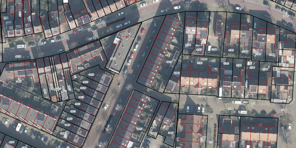 Het perceel waarop De Ereboog 15 staat heeft een oppervlakte van 970 m². Dit is een groot perceel. De perceeloppervlakte wordt geregistreerd door het Kadaster. Gedetailleerde informatie over de maten van dit perceel kunt u vinden in het rapport Kadastrale kaart met maatvoering van De Ereboog 15.