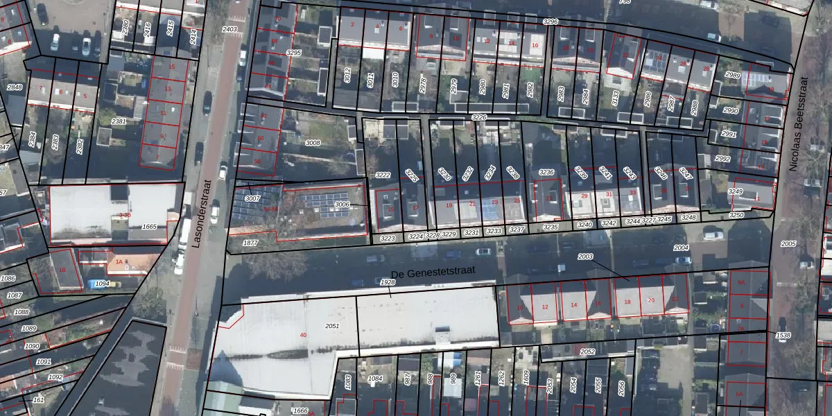 Het perceel waarop De Genestetstraat 17 staat heeft een oppervlakte van 158 m². Dit is een middelgroot perceel. De perceeloppervlakte wordt geregistreerd door het Kadaster. Gedetailleerde informatie over de maten van dit perceel kunt u vinden in het rapport Kadastrale kaart met maatvoering van De Genestetstraat 17.