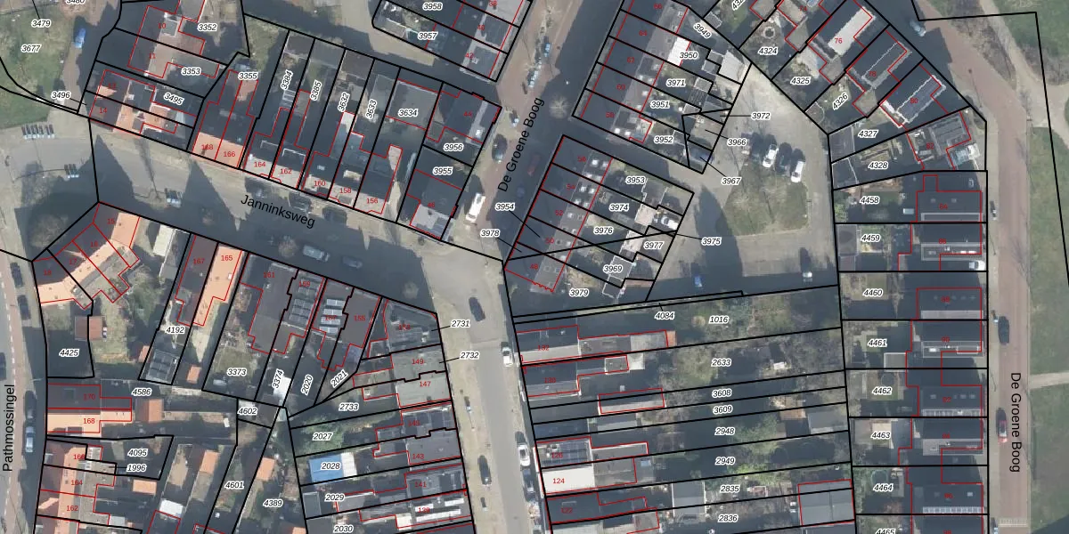 Gebruik de zoekbalk of klik op een perceel voor informatie over de adressen binnen dit perceel.