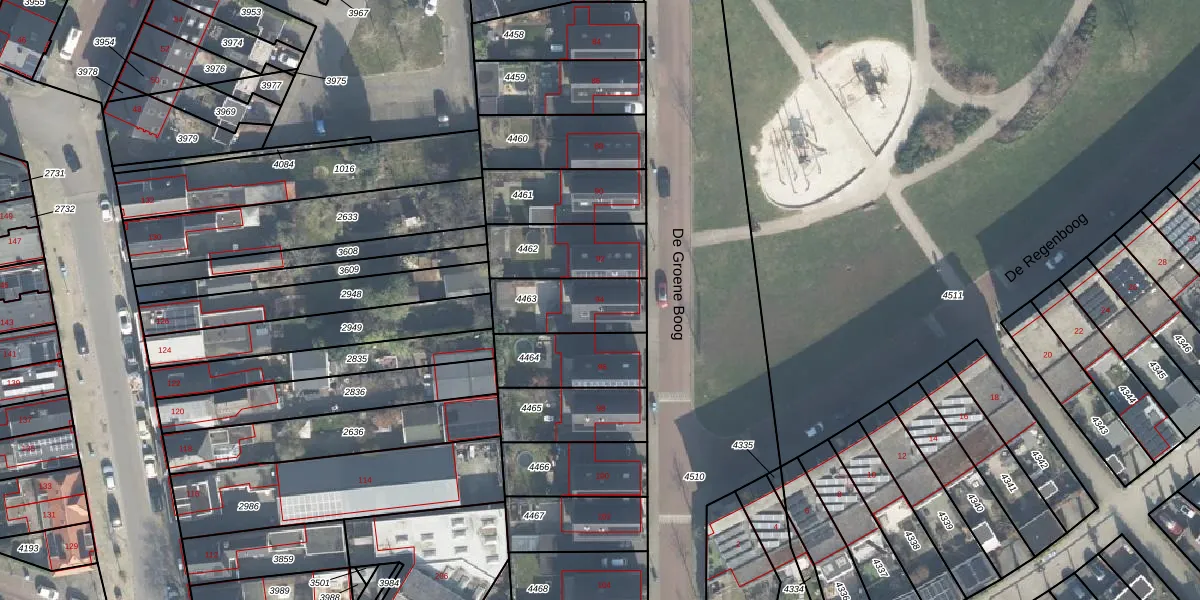 Gebruik de zoekbalk of klik op een perceel voor informatie over de adressen binnen dit perceel.