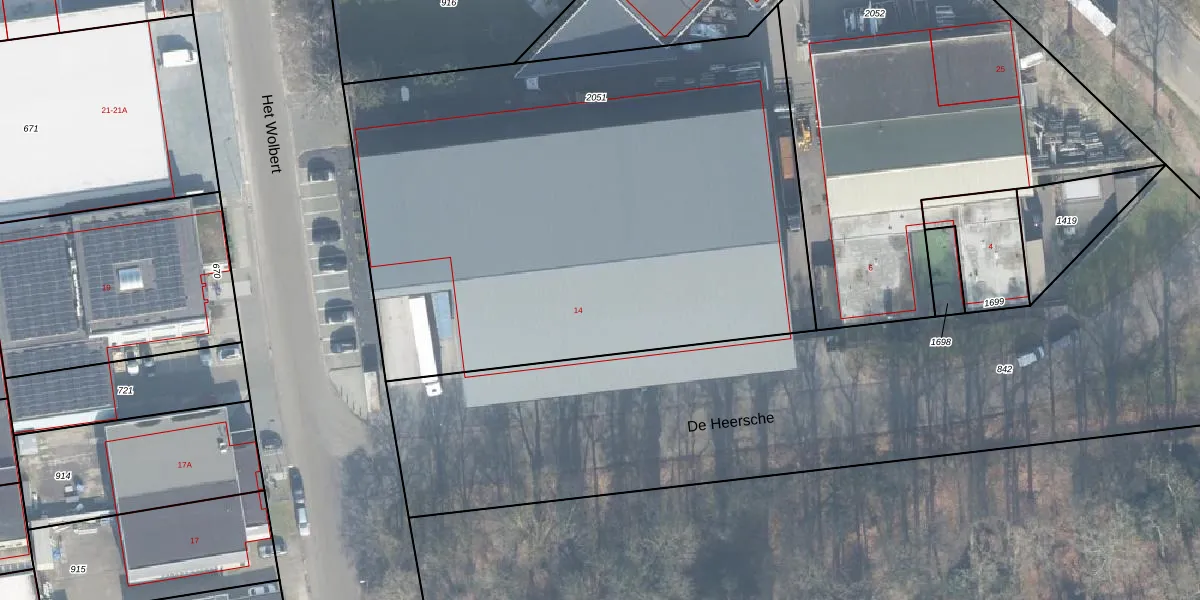 Het perceel waarop De Heersche 14 staat heeft een oppervlakte van 3658 m². Dit is een zeer groot perceel. De perceeloppervlakte wordt geregistreerd door het Kadaster. Gedetailleerde informatie over de maten van dit perceel kunt u vinden in het rapport Kadastrale kaart met maatvoering van De Heersche 14.