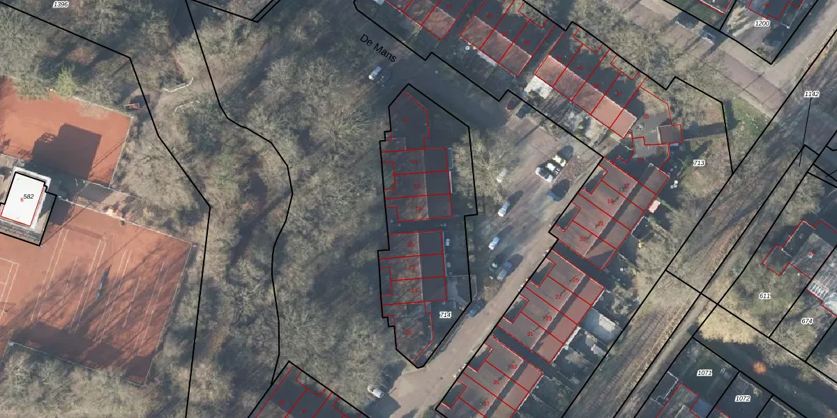 De Mans 18 is gelegen op kadastraal perceel LNK00W714. Deze kadastrale aanduiding is uniek en wordt gebruikt door het Kadaster om eigendomsrechten en andere zakelijke rechten vast te leggen. Het perceel maakt onderdeel uit van de kadastrale gemeente Lonneker.