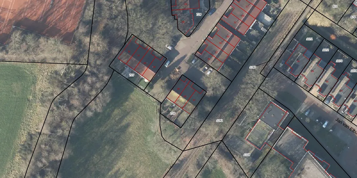 Het perceel waarop De Mans 45 staat heeft een oppervlakte van 411 m². Dit is een groot perceel. De perceeloppervlakte wordt geregistreerd door het Kadaster. Gedetailleerde informatie over de maten van dit perceel kunt u vinden in het rapport Kadastrale kaart met maatvoering van De Mans 45.