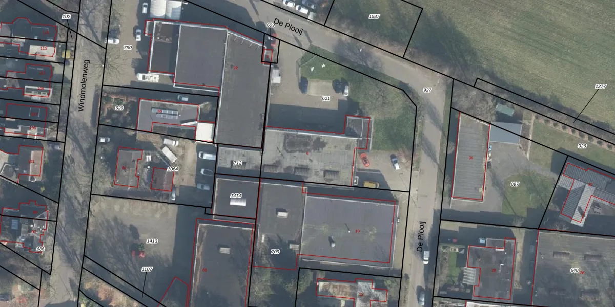 Het perceel waarop De Plooij 6 staat heeft een oppervlakte van 1855 m². Dit is een zeer groot perceel. De perceeloppervlakte wordt geregistreerd door het Kadaster. Gedetailleerde informatie over de maten van dit perceel kunt u vinden in het rapport Kadastrale kaart met maatvoering van De Plooij 6.
