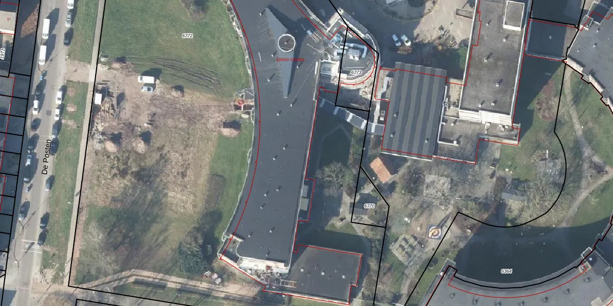 Het perceel waarop De Posten 135-51 staat heeft een oppervlakte van 1,1 ha. Dit is een zeer groot perceel. De perceeloppervlakte wordt geregistreerd door het Kadaster. Gedetailleerde informatie over de maten van dit perceel kunt u vinden in het rapport Kadastrale kaart met maatvoering van De Posten 135-51.