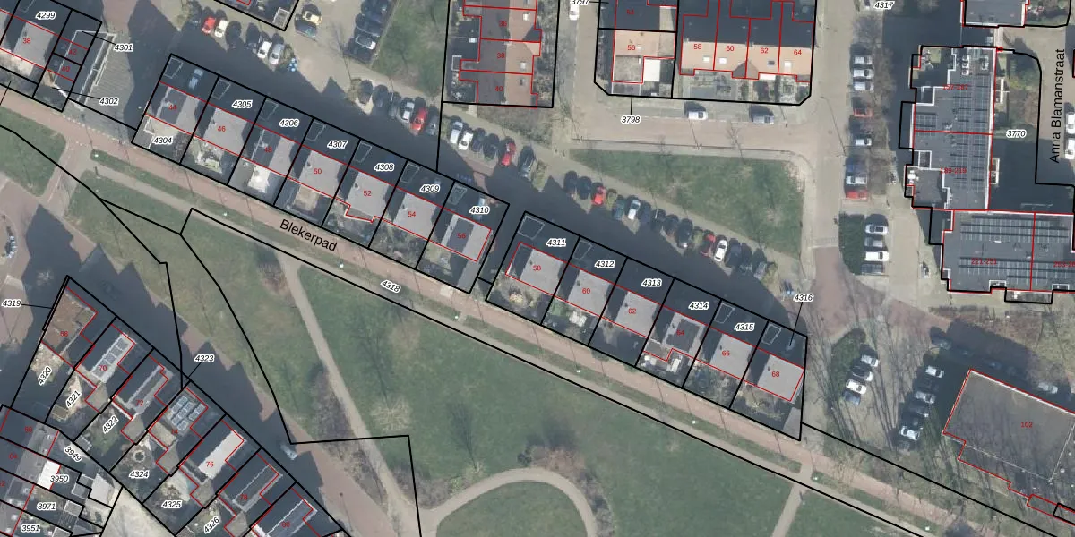 Gebruik de zoekbalk of klik op een perceel voor informatie over de adressen binnen dit perceel.