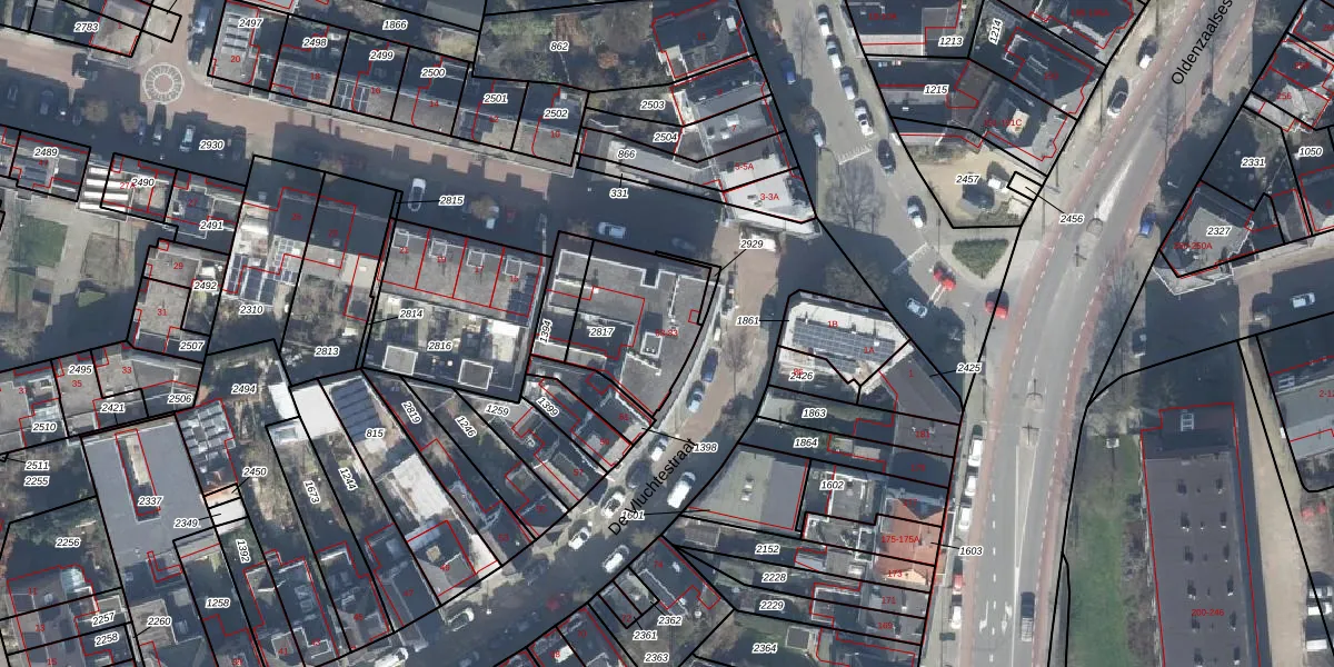 Het perceel waarop het adres ligt is ESD00-L-2817. De afkorting 'ESD00' staat voor kadastrale gemeente Enschede. Het perceel is kleiner dan gemiddeld in Enschede. Het perceel is 367 m² groot, terwijl het gemiddelde ligt op 548,14 m². Het grootste perceel in de kadastrale gemeente is 10,7 ha. Het kleinste perceel heeft een oppervlakte van 0 m². Op het perceel liggen in totaal 11 adressen. De huidige grenzen van het perceel zijn digitaal in de Basisregistratie Kadaster (BRK) geregistreerd op 04-11-2009.