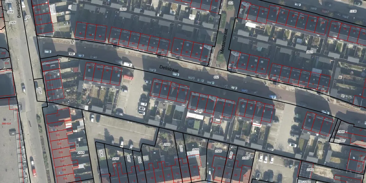 Delistraat 29 is gelegen op kadastraal perceel ESD00F2843. Deze kadastrale aanduiding is uniek en wordt gebruikt door het Kadaster om eigendomsrechten en andere zakelijke rechten vast te leggen. Het perceel maakt onderdeel uit van de kadastrale gemeente Enschede.