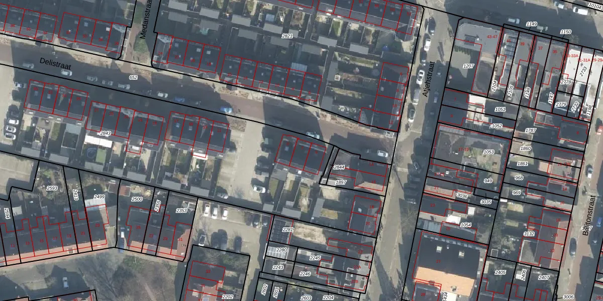 Het perceel waarop Delistraat 7 staat heeft een oppervlakte van 4818 m². Dit is een zeer groot perceel. De perceeloppervlakte wordt geregistreerd door het Kadaster. Gedetailleerde informatie over de maten van dit perceel kunt u vinden in het rapport Kadastrale kaart met maatvoering van Delistraat 7.