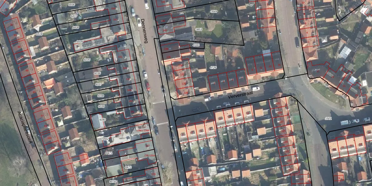 Het perceel waarop Dennenweg 128 staat heeft een oppervlakte van 6303 m². Dit is een zeer groot perceel. De perceeloppervlakte wordt geregistreerd door het Kadaster. Gedetailleerde informatie over de maten van dit perceel kunt u vinden in het rapport Kadastrale kaart met maatvoering van Dennenweg 128.