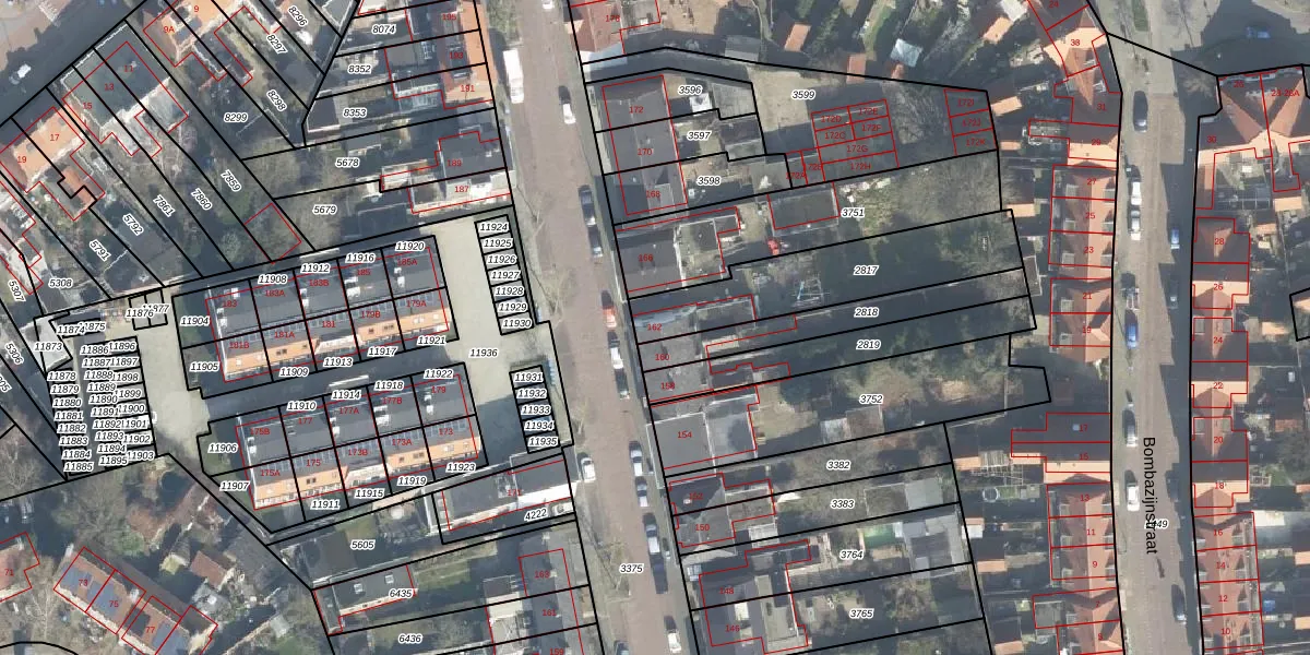 Gebruik de zoekbalk of klik op een perceel voor informatie over de adressen binnen dit perceel.