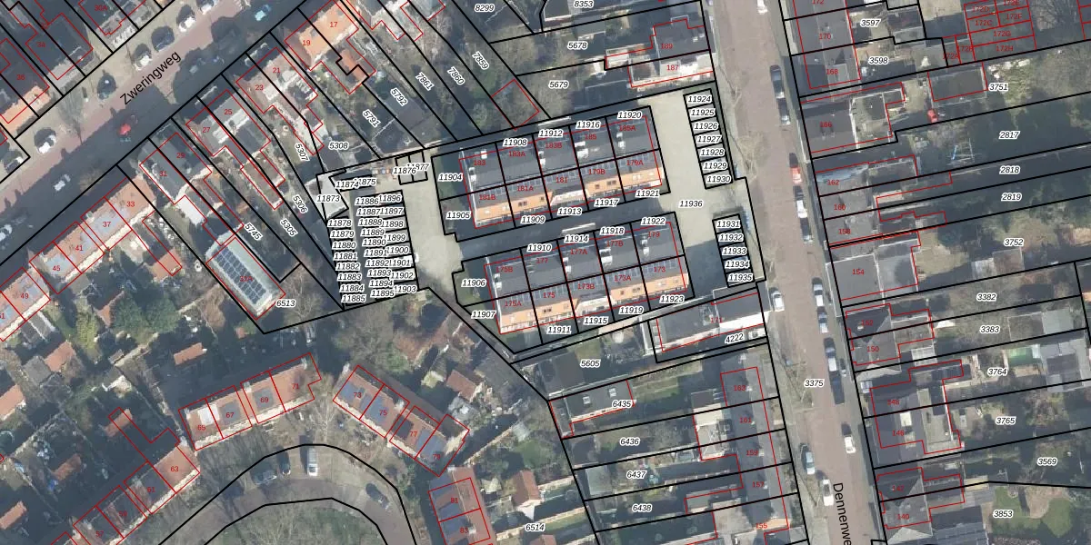 Het perceel waarop Dennenweg 177 staat heeft een oppervlakte van 56 m². Dit is een klein perceel. De perceeloppervlakte wordt geregistreerd door het Kadaster. Gedetailleerde informatie over de maten van dit perceel kunt u vinden in het rapport Kadastrale kaart met maatvoering van Dennenweg 177.