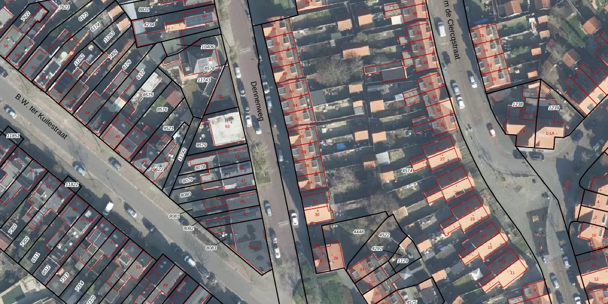 Het perceel waarop Dennenweg 38 staat heeft een oppervlakte van 7712 m². Dit is een zeer groot perceel. De perceeloppervlakte wordt geregistreerd door het Kadaster. Gedetailleerde informatie over de maten van dit perceel kunt u vinden in het rapport Kadastrale kaart met maatvoering van Dennenweg 38.
