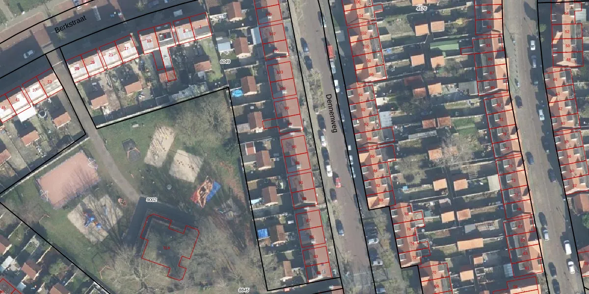 Het perceel waarop Dennenweg 95 staat heeft een oppervlakte van 4163 m². Dit is een zeer groot perceel. De perceeloppervlakte wordt geregistreerd door het Kadaster. Gedetailleerde informatie over de maten van dit perceel kunt u vinden in het rapport Kadastrale kaart met maatvoering van Dennenweg 95.