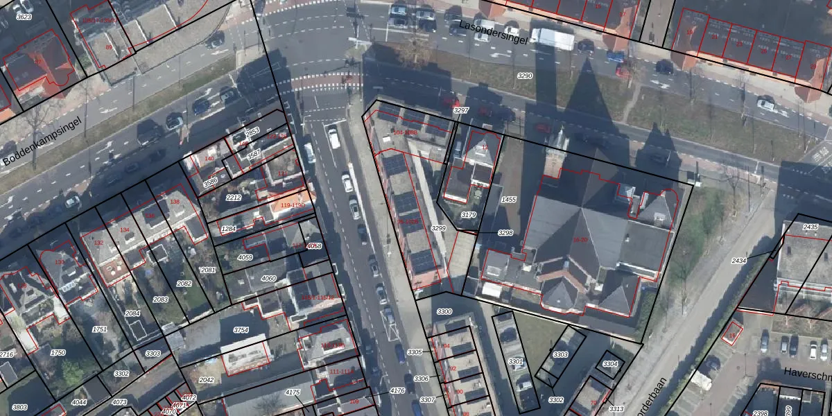 Het perceel waarop het adres ligt is ESD00-L-3299. De afkorting 'ESD00' staat voor kadastrale gemeente Enschede. De oppervlakte van het perceel is 730 m². Dat is groter dan gemiddeld in Enschede, waar de gemiddelde perceeloppervlakte op 548,39 m² ligt. Het grootste perceel in de kadastrale gemeente is 10,7 ha. Het kleinste perceel heeft een oppervlakte van 0 m². Op het perceel liggen in totaal 21 adressen. De huidige grenzen van het perceel zijn digitaal in de Basisregistratie Kadaster (BRK) geregistreerd op 24-01-2022.