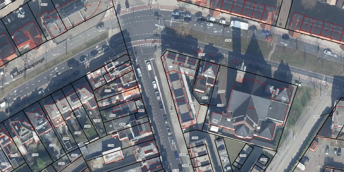 Het perceel waarop het adres ligt is ESD00-L-3299. De afkorting 'ESD00' staat voor kadastrale gemeente Enschede. De oppervlakte van het perceel is 730 m². Dat is groter dan gemiddeld in Enschede, waar de gemiddelde perceeloppervlakte op 548,39 m² ligt. Het grootste perceel in de kadastrale gemeente is 10,7 ha. Het kleinste perceel heeft een oppervlakte van 0 m². Op het perceel liggen in totaal 21 adressen. In de Basisregistratie Kadaster (BRK) werden de grenzen van het perceel geregistreerd op 24-01-2022.