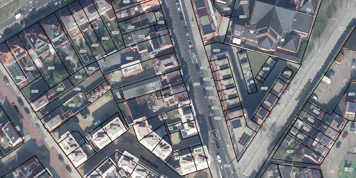 Gebruik de zoekbalk of klik op een perceel voor informatie over de adressen binnen dit perceel.