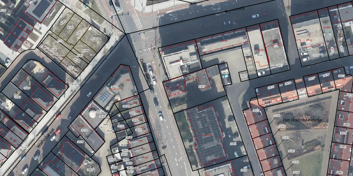 Gebruik de zoekbalk of klik op een perceel voor informatie over de adressen binnen dit perceel.