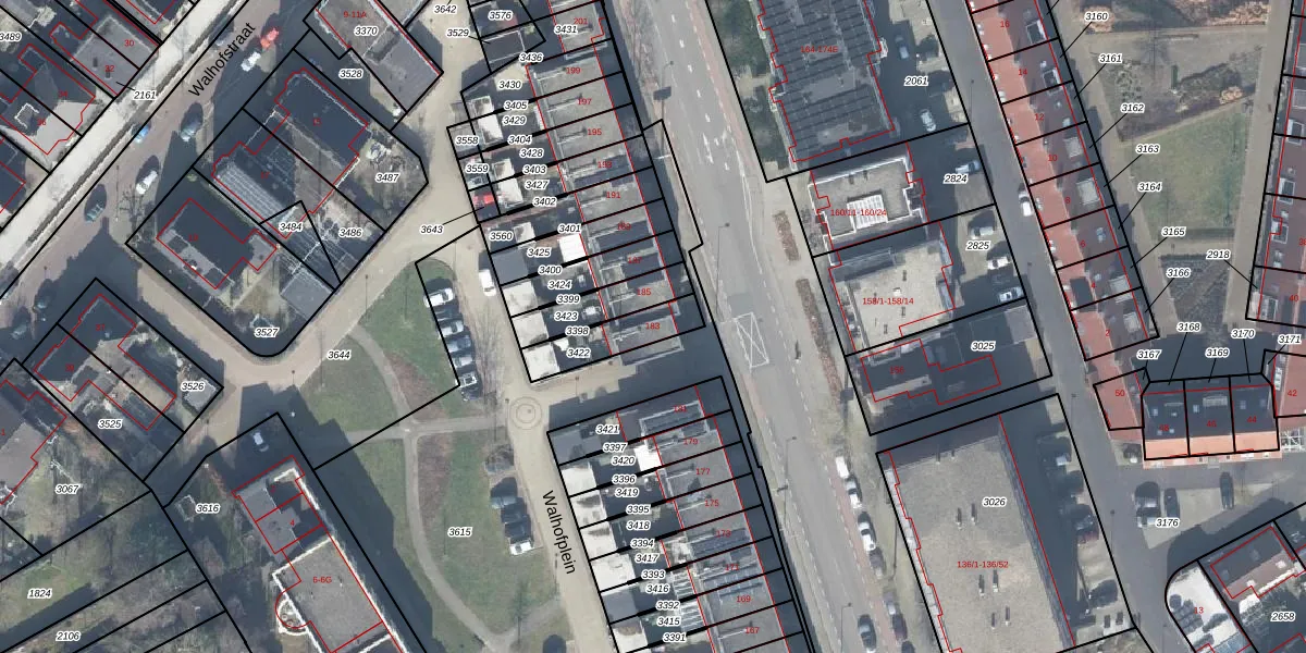 Gebruik de zoekbalk of klik op een perceel voor informatie over de adressen binnen dit perceel.